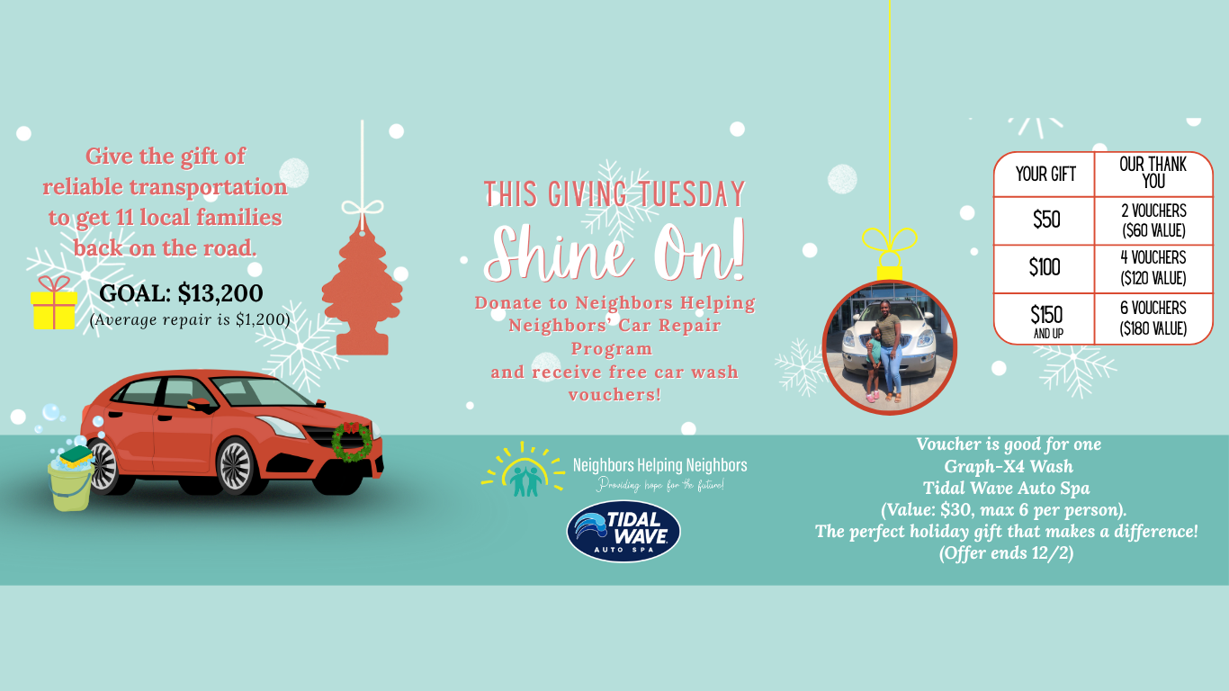 “Thank you for helping me get my new car. It is amazing! … It means I don’t have to wait for hours before work for the store to open and after it has closed waiting for a ride. … It has truly changed my life. It’s lovely to know there are still angels out there in the world, and you and the Neighbors Helping Neighbors are some of them. I will always appreciate what you have done for me. ”
