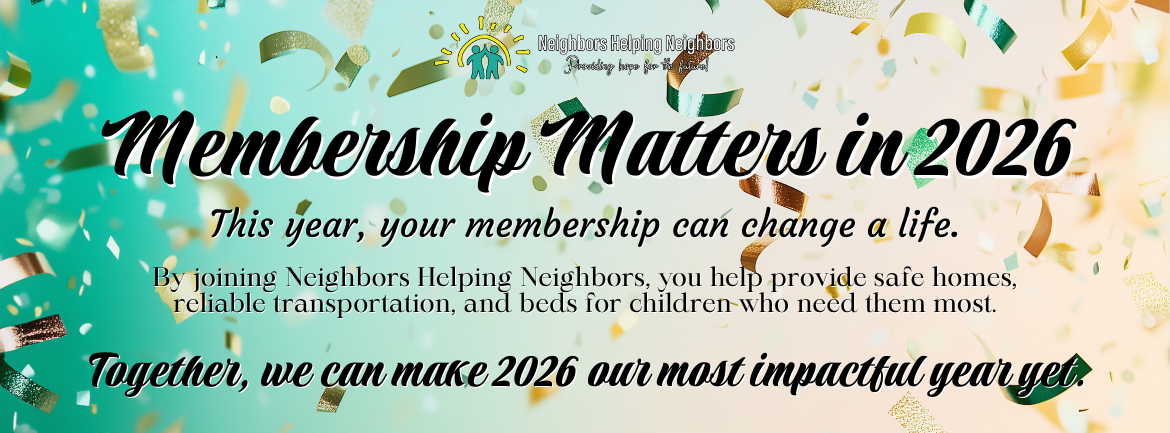 Neighbors Helping Neighbors, Inc. (NHN) is a local 501(c)(3) organization that provides a hand up to neighbors facing urgent hardship. We make homes safe and livable, get families back on the road with reliable transportation, and ensure every child has a warm bed to sleep in at night.